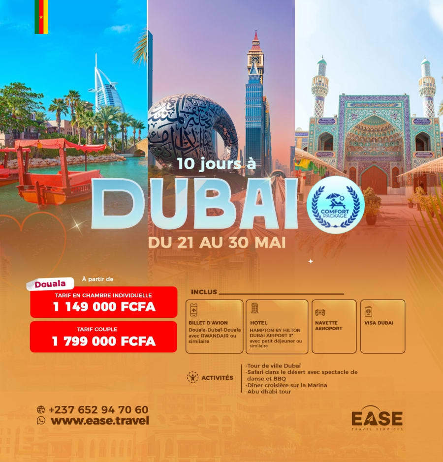 Billet d'avionDouala-Dubai-Douala (Ethiopian ou compagnie similaire)