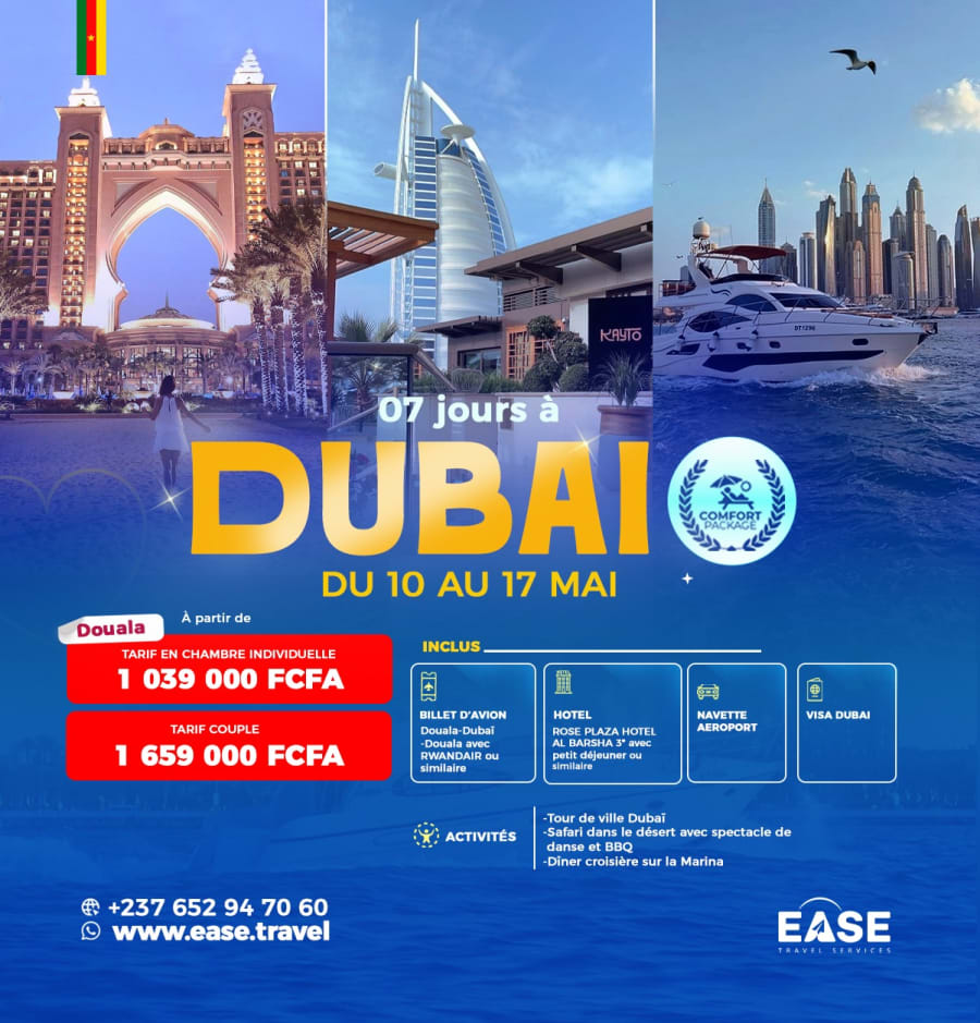 JOUR 1 – DÉPART (Départ de Douala à destination Dubai)